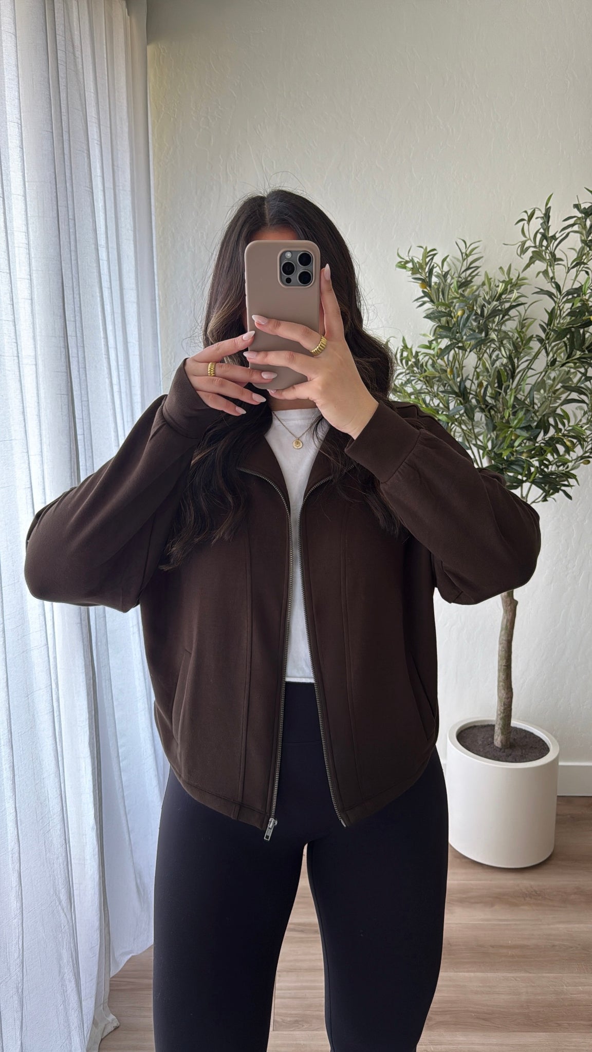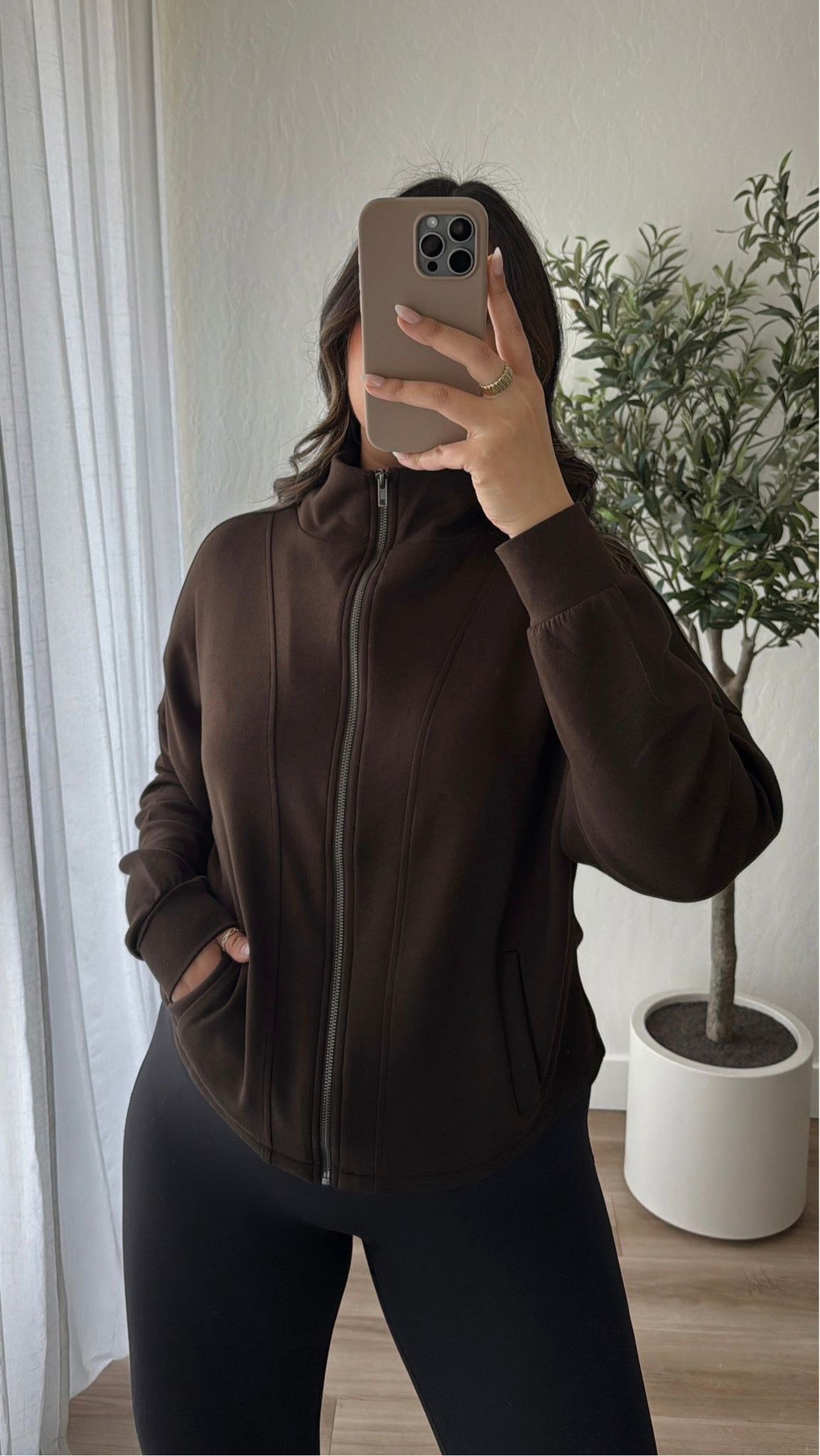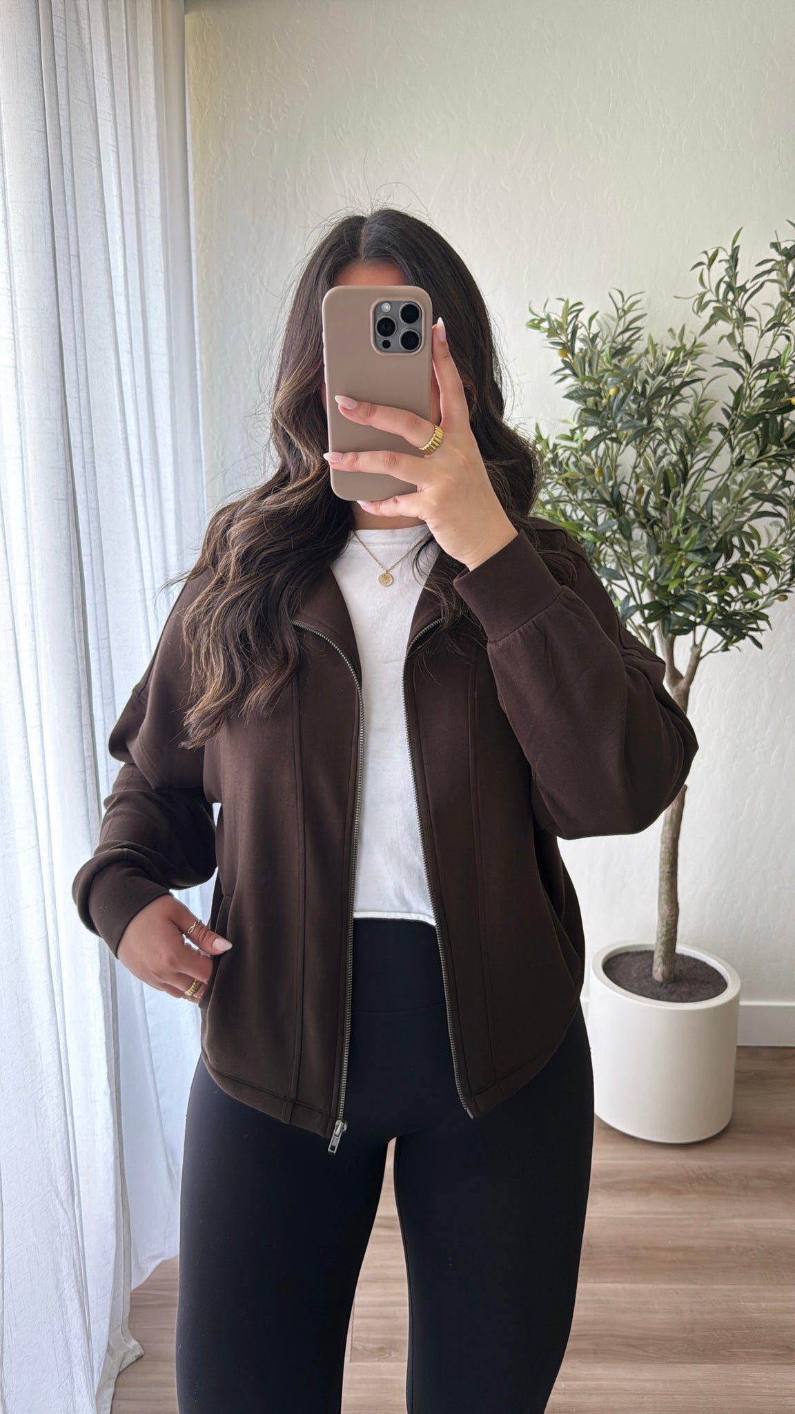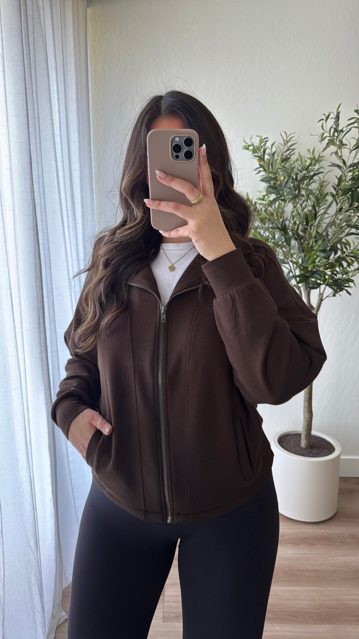High neck, full length zip up