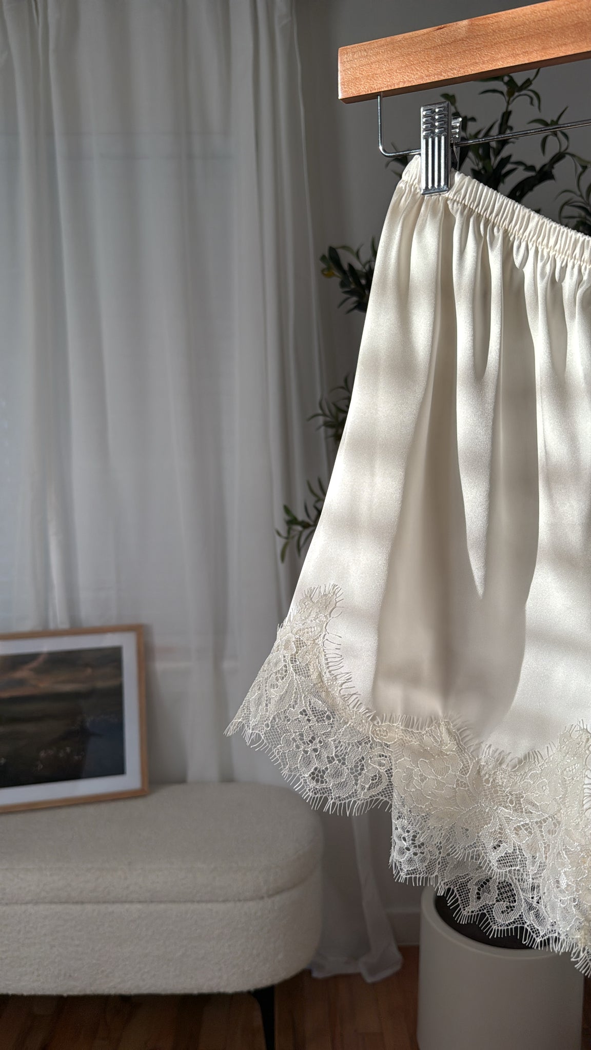 Lace Trim Satin Shorts